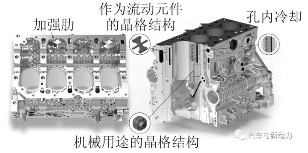 研究人员通过专门的设计方法,使厚度不大于2 mm的材料实现了冷却、润滑及换气等功能,晶格结构的厚度明显小于2 mm。与传统的铸造工艺相比,该方法可以根据负荷的不同而采用多种壁厚参数,且不会存在与传统制造相关的结构弱点。